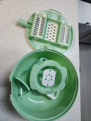 La Mandoline permet de trancher, d'éplucher, de broyer, de séparer les œufs. L'outil de coupe convient aux pommes de terre, concombres, carottes, gingembre, ail, etc.