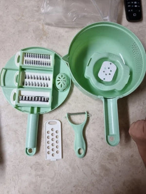 La Mandoline avec Bocal 12 en 1 : une râpe polyvalente qui vous permet de couper, trancher, éplucher et même séparer les œufs ! Fabriquée en matériaux de qualité supérieure, elle résiste à la rouille pour une utilisation durable. Faites tout avec cet outil de coupe pratique pour vos légumes, fruits et plus encore !