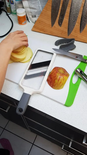 Découvrez notre Mandoline cuisine trancheuse à légumes pour gagner du temps dans votre cuisine ! Coupez rapidement et facilement vos fruits et légumes en tranches uniformes grâce à ses 3 épaisseurs réglables (1 mm, 2 mm, 3 mm). Fabriquée en matériaux de qualité, elle vous offre une préparation des aliments plus rapide et un nettoyage facile.