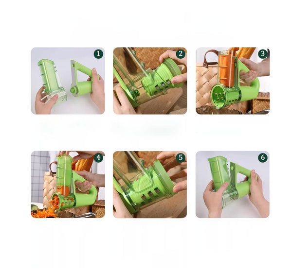 Mandoline électrique cuisine portatif, offrant des fonctions de tranchage, de râpage et de broyage en un seul hachoir, rendant la préparation des aliments simple et efficace. Que ce soit dans la cuisine ou lors de pique-niques en plein air, il offre une expérience agréable de la transformation des aliments.