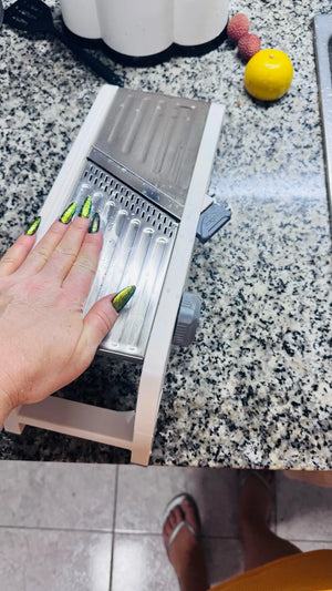 Lame en acier inoxydable, tranchante et durable, qui ne rouille pas. Il n'est pas nécessaire de remplacer la lame, ce qui permet d'économiser du temps et des efforts. Le protège-main sécurise les aliments pour un tranchage stable ; les lames intégrées éliminent les pièces détachées.