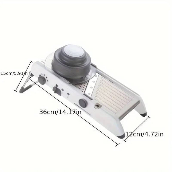 Mandoline professionnelle Multifonction en acier inoxydable pour Fruits et Légumes avec Épaisseur Réglable, 3 Types de Lames et 18 Options de Tranchage, Outil de Cuisine pour Râper et Trancher, Métal et Polycarbonate, Pas d'Électricité Nécessaire.