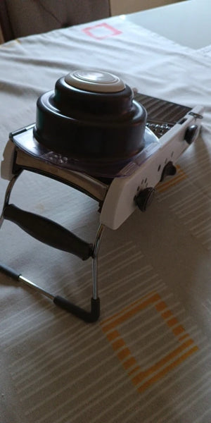 Épaisseur réglable de 1 mm à 6,5 mm pour déchiqueter, trancher et gaufrer. Idéal pour les frites, les frites, le coleslaw, les salades et la fabrication de fruits ou de légumes.