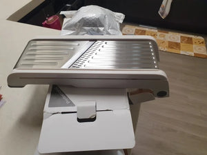 La mandoline peut faire tout ce que vous voulez, trancher vos légumes et fruits préférés, peut être utilisé comme râpe, cutter, trancheuse à julienne, dés, machine à soie, coupe-légumes, coupe-pommes de terre, coupe-tomates, coupe-oignons, rondelles de concombre, carottes et oignons.