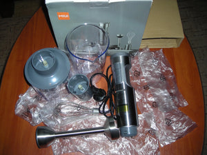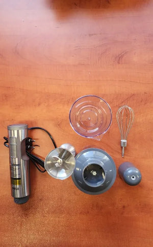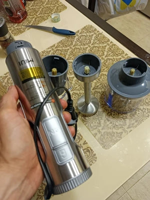 Obtenez des repas maison savoureux, sains et parfaitement mixés en quelques minutes, sans effort ni désordre. Grâce à sa puissance de 1000 W et ses 4 fonctions essentielles, le mélangeur plongeant manuel 4 en 1 remplace plusieurs appareils à la fois. Résultat : vous gagnez du temps, de l’espace et vous préparez tout, smoothies, soupes, purées, sauces avec une texture parfaite à chaque fois.