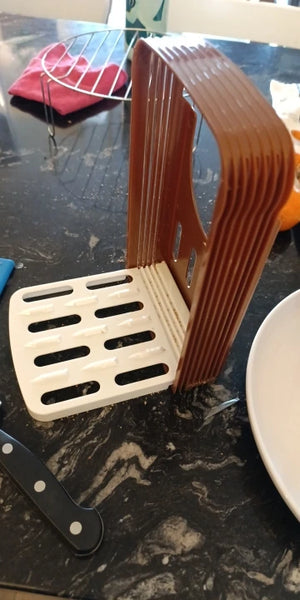 Trancheuse à pain réglable qui vous permet de couper votre pain en 4 différentes épaisseurs : 15 mm, 20 mm, 24 mm et 30 mm. Elle s'adapte à toutes les tailles de pain et peut également être utilisée pour couper du jambon, du fromage et des légumes.